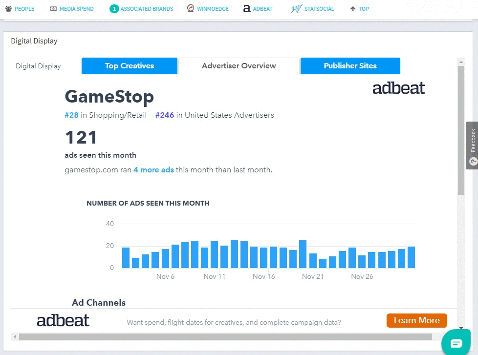 We’ve integrated creatives and ad intelligence from Adbeat right within brand and company listings, giving you a clear view of digital dollars in real time.